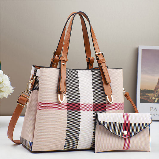 Dollcini Női Táska és Pénztárca Szett – Stílusos, Kockás Műbőr Kézitáska