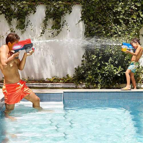 - Akár 3-8 méteres hatótávolság, amely messzebbre ér, mint a legtöbb hagyományos vízipisztoly