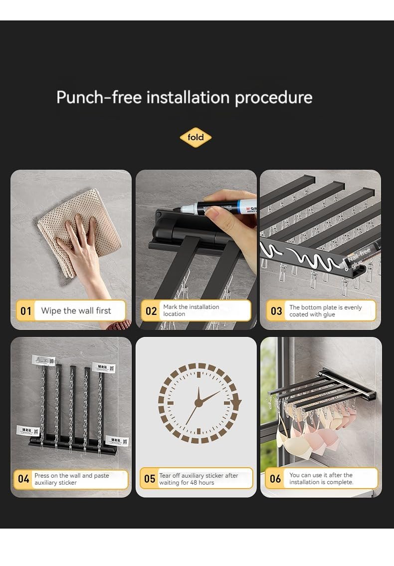 - Bármikor beállíthatja a ruhaszárító állvány helyzetét anélkül, hogy a falat megsértené, nagy kényelmet és rugalmasságot biztosítva.