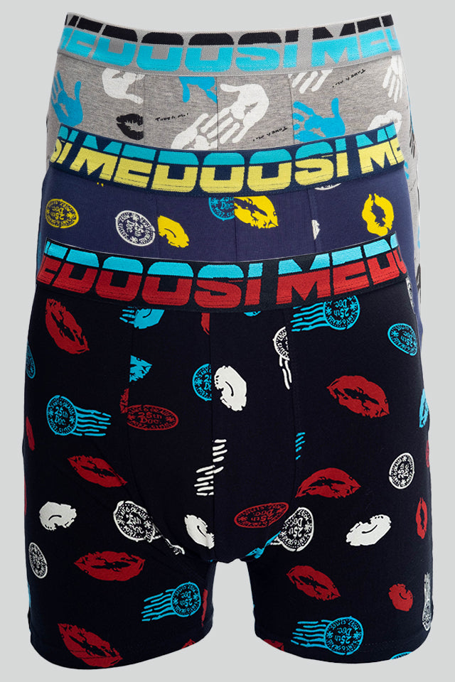 Dollcini Légáteresztő Pamut Férfi Boxeralsó - 95% Pamut, Csókmintás, 3 darabos szett