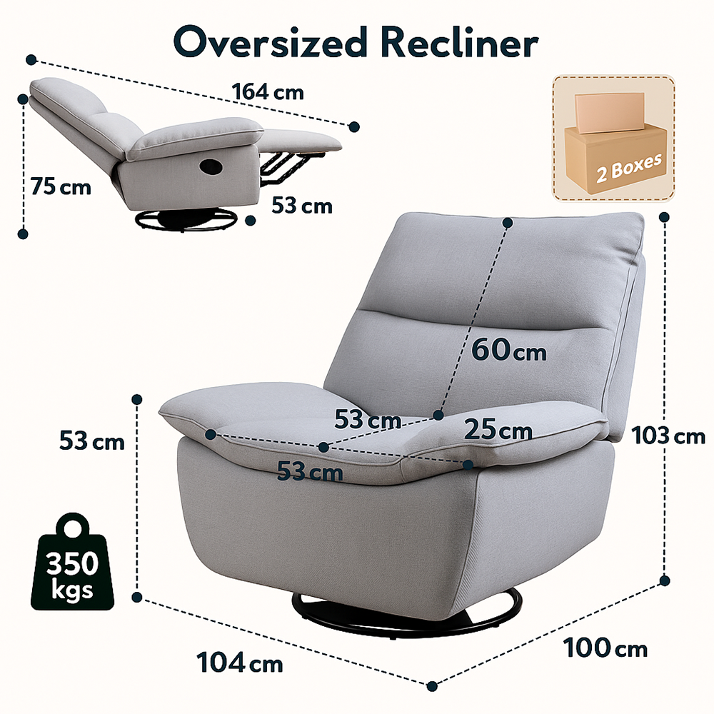 Sokoldalú, manuális pihenőfotel – extra széles, dönthető, forgatható, ringatható és rejtett tárolóval