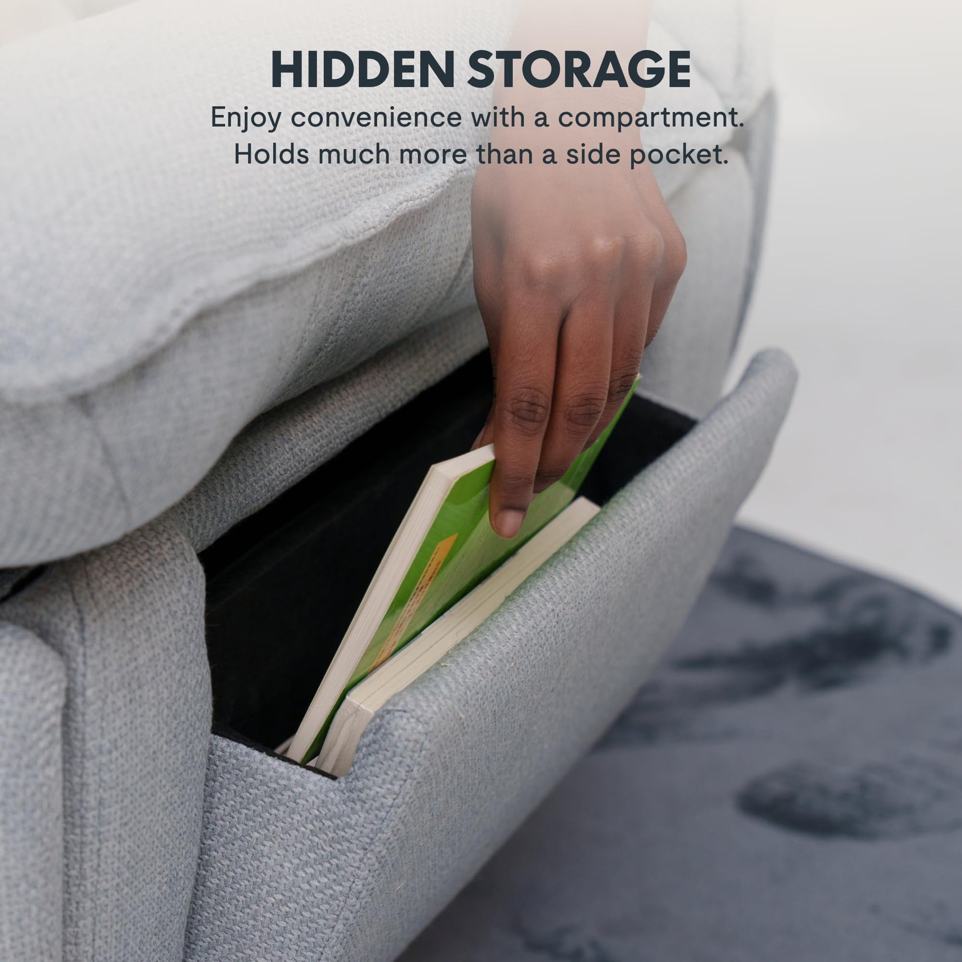 Az ülés oldalán található rejtett tárolórekeszben olyan tárgyak tárolhatók, mint könyvek, távirányítók és akár higiéniai termékek is, ami egyszerre praktikus és rejtett.