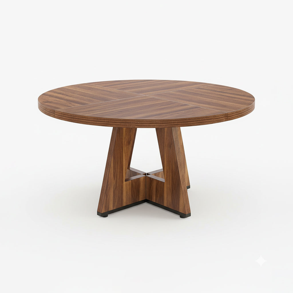 Alakítsa étkezőjét a modern elegancia szigetévé ezzel a lenyűgöző, kerek étkezőasztallal! A Dollcini Otthon bútordarabja a kortárs dizájn és a meleg, természetes hatás tökéletes fúziója. Az egyedi, geometrikus mintázatú, diófa színű asztallap azonnal magára vonzza a figyelmet, míg a robusztus, középen elhelyezett lábszerkezet letisztult és szellős megjelenést kölcsönöz.