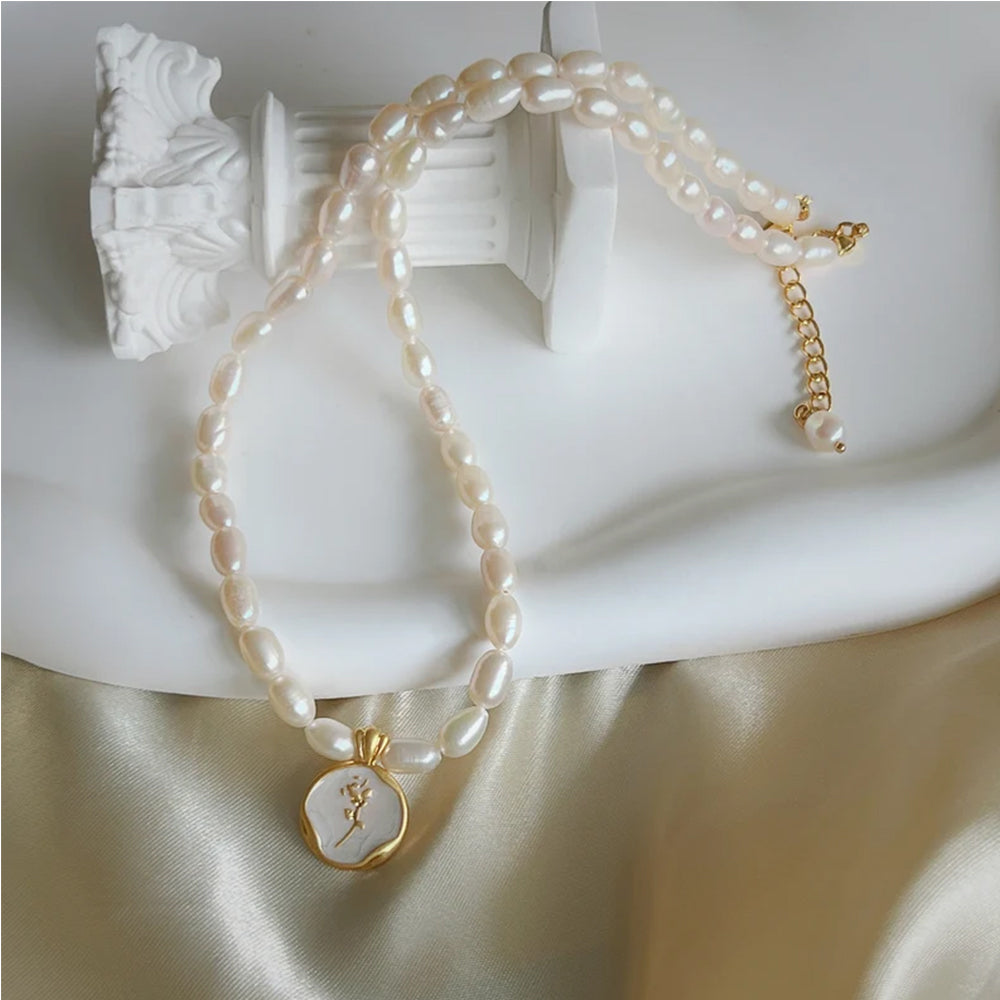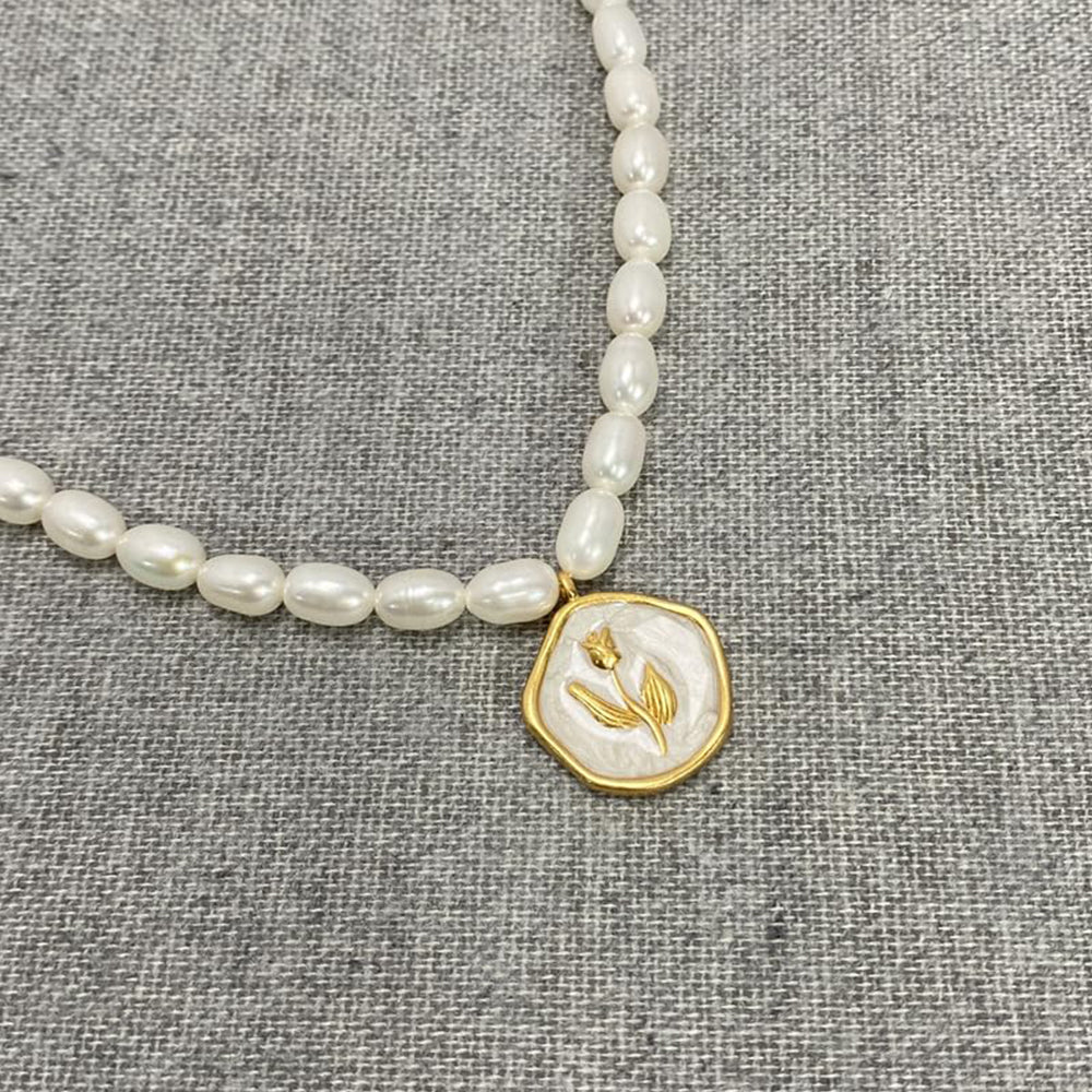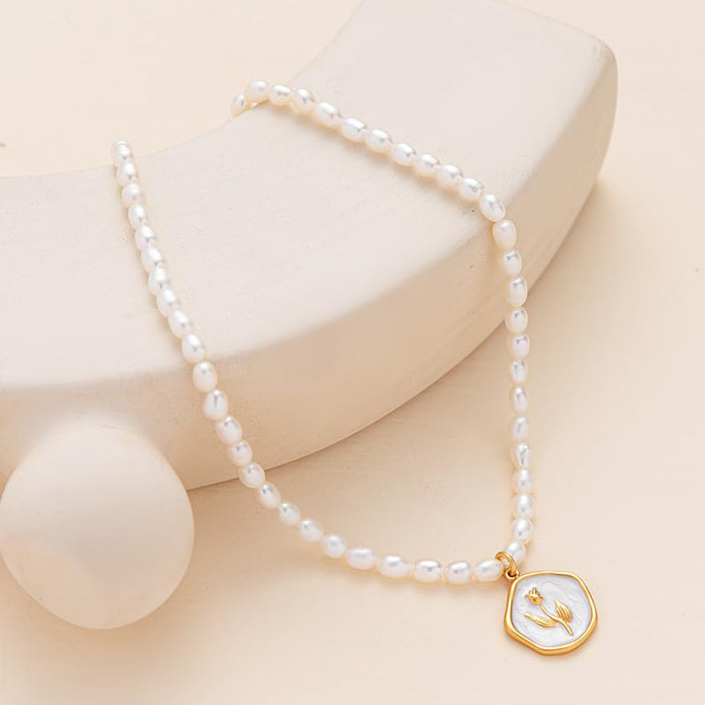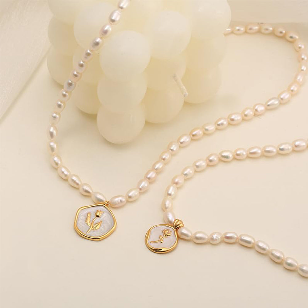 Dollcini Pearl Gyöngy Nyaklánc Virág Medállal – Rózsa vagy Tulipán