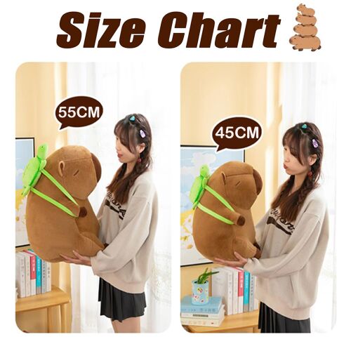 Ez a barna, bohókás kapibara plüss zöld plüssbékával a fején egyedi karakter, amely barátságos megjelenésével és puha textúrájával mindenkit levesz a lábáról.