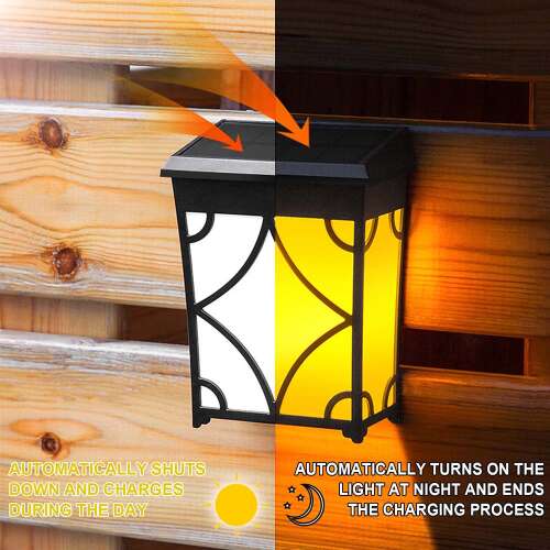 Retro napelemes kerítéslámpák: Minden kerítéslámpa 2 LED gyöngyöt tartalmaz, RGB lámpák és borostyánsárga lámpák állnak rendelkezésre. A tetõ alakú napelemek és a lámpaház mintázata retró kis kerti díszléccé teszi.